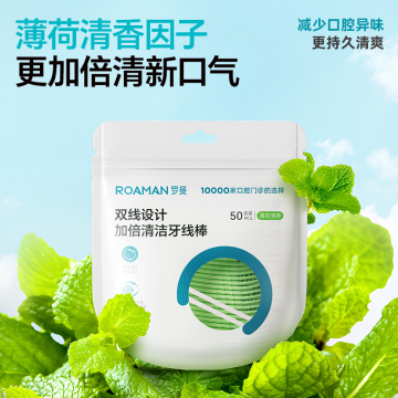 精选超细薄荷纤维线体,采用Y型双线设计深入牙缝无死角清洁,高分子纤维细滑不伤龈,缓释含氟因子,长效防蛙,牙线+牙签+舌苔刷,一支三用。