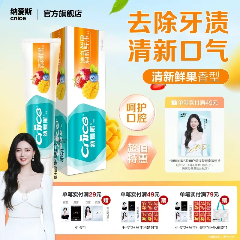 任选4件到手15.6,纳爱斯清新鲜果牙膏果香浓郁维C防蛀护龈洁白健白牙膏