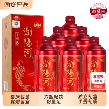 下拉金币入口53.2【浏阳河,商超品牌】柔和5浓香型52度白酒,纯粮酿造,酒线绵长,入口绵柔顺喉,超值500ml*6瓶整箱装,送手提礼袋!送礼自喝都很不错!