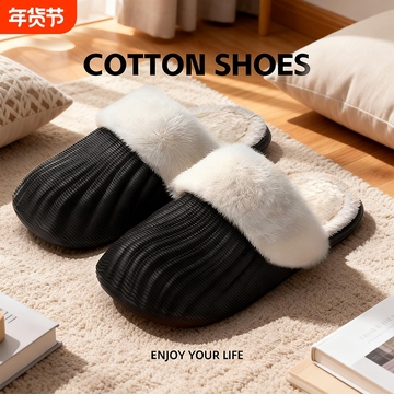 情侣新款保暖加绒棉拖鞋 下拉金币到手9.9元
