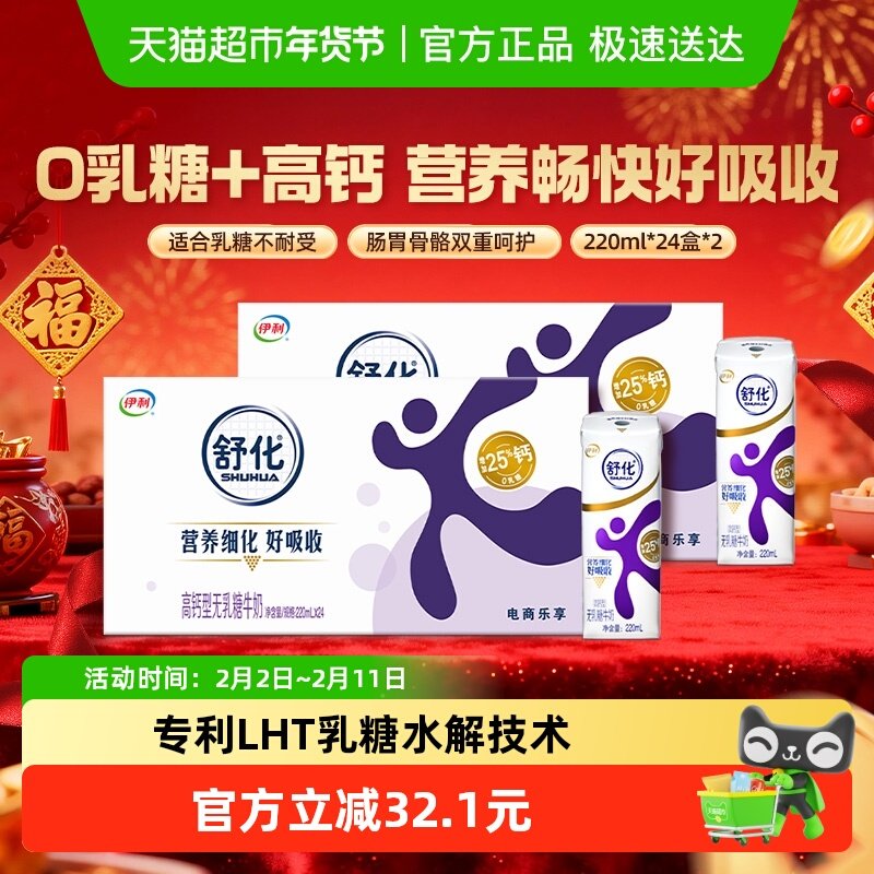 舒化 伊利舒化无乳糖高钙牛奶 220ml*24盒*2箱 117.9元 (需用券)