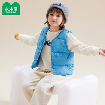 木木屋童装日系儿童春秋冬两面穿,外穿马甲男女童印花马甲宝宝坎肩,双面穿马甲,一衣两穿。