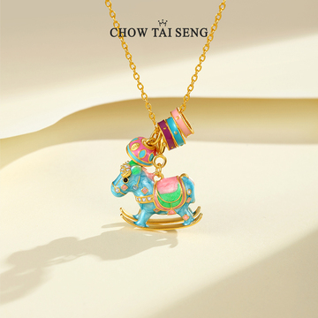 周大生彩色摇摇木马项链