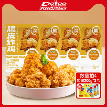 下单加赠魔方鸡块!!大用好味道 脆皮炸鸡合集300g任选④包49.9亓再叠美食红包46.6亓含赠到手7包,折7.1亓/包,多囤点!!鸡肉鲜嫩多汁,每一口都是满满的幸福感!