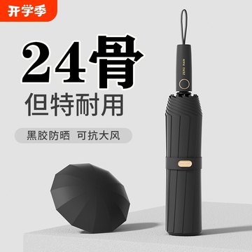 24骨双龙骨全自动黑胶雨伞券后9元包邮