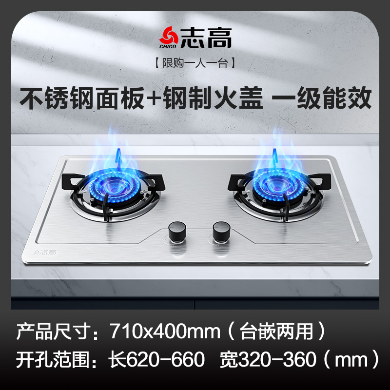 移动端:志高 煤气灶双灶燃气灶嵌入式天然气灶台式 不锈钢色 169元