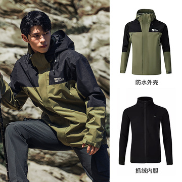 带国家质检报告,贵人鸟真冲锋衣(非夹克)三合一款,耐污,防水,验货防风防水国标质检4-5级。清仓价格129到手,右上角淘金币到手123元!